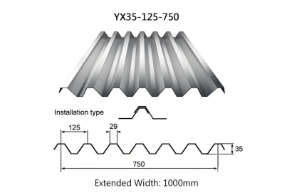 Wave height: 35mm, wave length: 125mm, cover width: 750mm, making it one of the mainstream choices for industrial building walls.