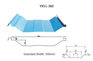 Key features include thermal expansion and contraction, excellent sliding properties, and excellent waterproofing between panels. It fully meets snow load requirements for most northern regions. The YW51-360 YX51-360 (Jiao Chi II) profile resolves roof leakage issues common in conventional profiled sheets. Its connection method breaks from traditional bolted roofing practices, utilizing a 180-degree interlocking installation for superior waterproofing performance. This profiled sheet is a standing seam roof panel featuring high wave peaks, high strength, and screw-free construction.