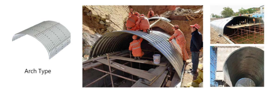 Description: Corrugated plates are fabricated into standard-sized sections, transported to the site as “prefabricated components,” and assembled using high-strength bolts to form structures of required shapes and dimensions.