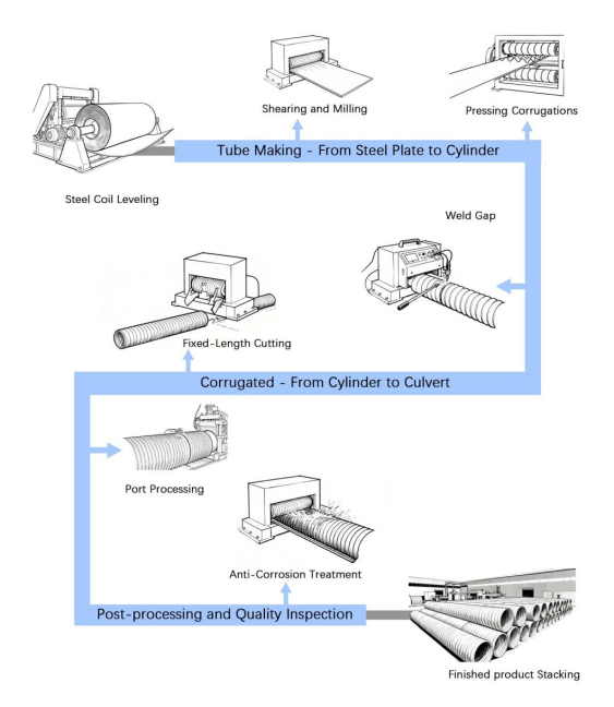 Summary: From the selection of high-quality steel to automated pipe manufacturing, precision corrugated pressing, and long-term anti-corrosion treatment, each process directly determines the final structural strength, durability, and reliability of the corrugated culvert. It is this strict control over raw materials and manufacturing processes that ensures the long-term stable service of the corrugated culvert in harsh underground environments.